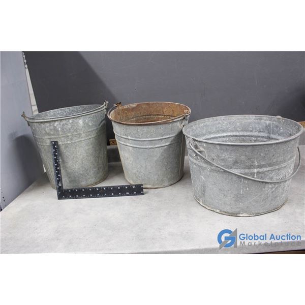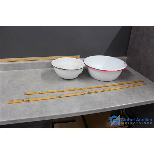 (3) Vintage Enamel Pieces - Pail, Bowl & Pot