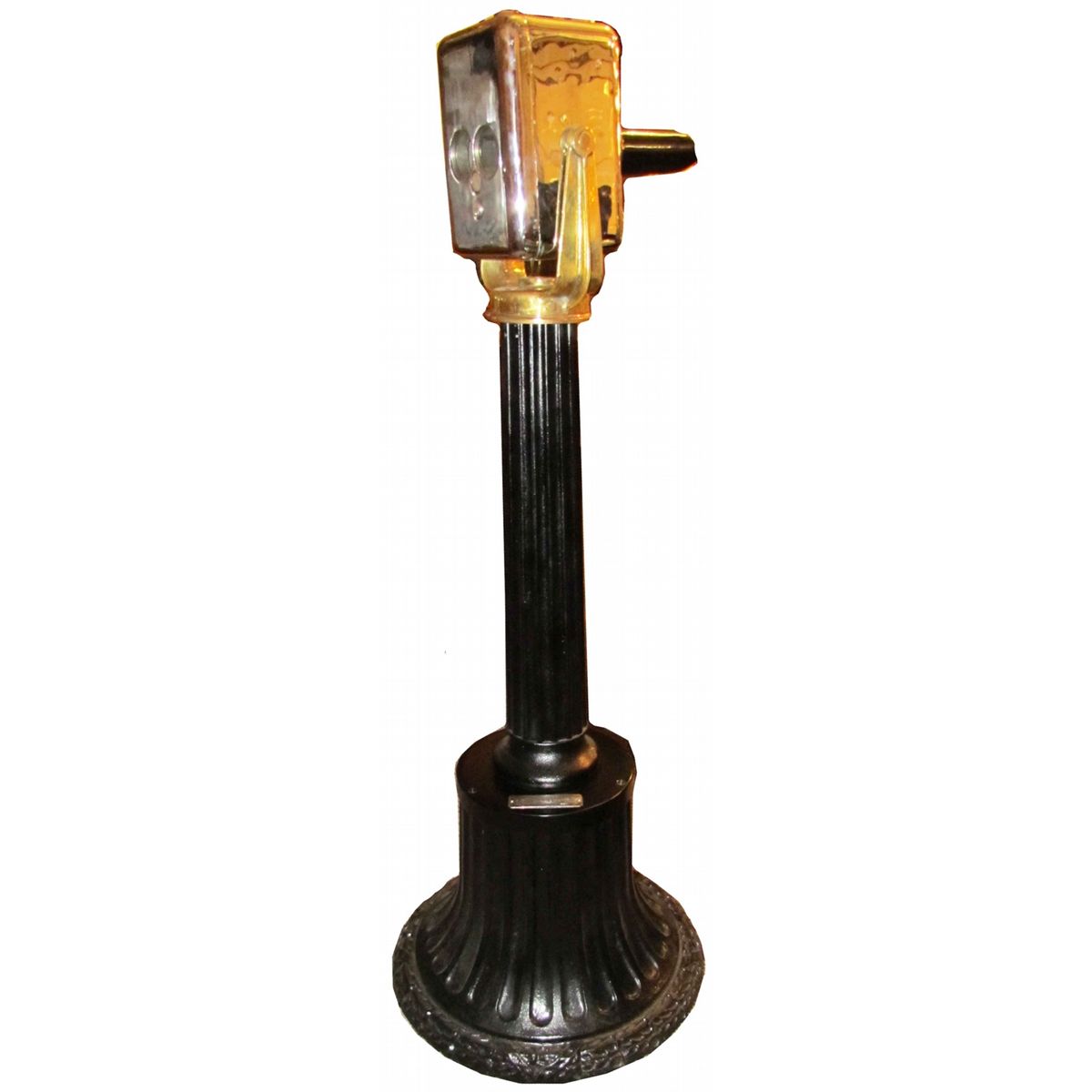 Globe Hy-Power Binauculars. 10 cent operation, for day and night use. Brass and nickel with original instruction placques, mounted on cast iron base. From the Coulee Dam, Washington. Excellent restored working condition, comes with keys. 60 inches tall.
