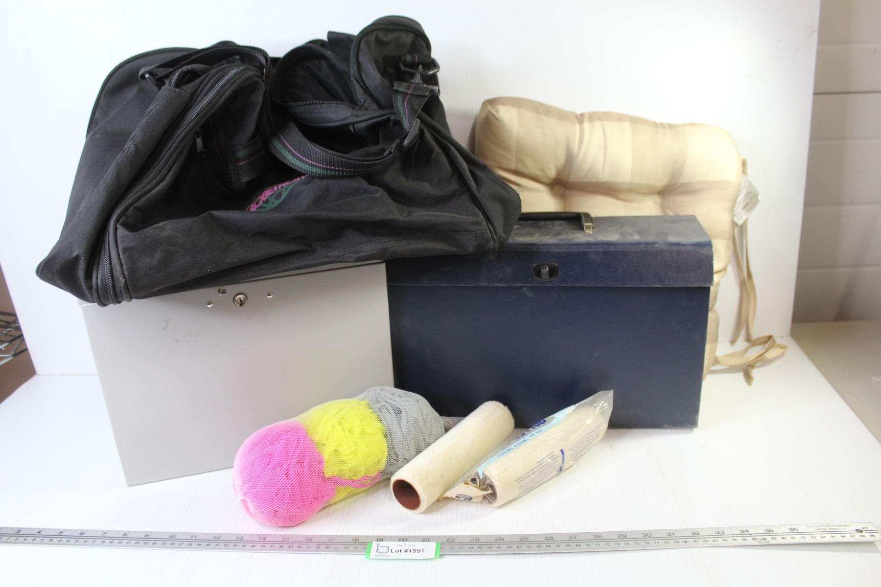 Globe Trotter Carry Bag - Cushion - Metal File Holder - Cardboard File Holder w/Handle (2) Paint Rollers - Bath Scrunchies?