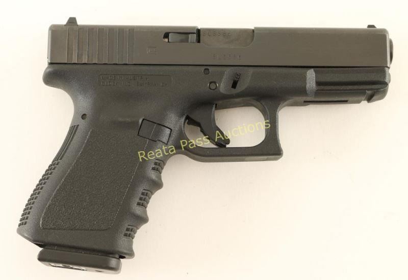 Austrian made compact safe-action semi-automatic pistol chambered in 9x19mm. Features a black coated finish, 4.01" barrel, white dot partridge front sight, white outlined rear window sight, trigger safety, push button magazine release, 15 round factory magazine and durable black polymer frame with integral accessory rail & finger groove grip. Includes a factory hard case with documents, cleaning rod, brush, spent case, lock, speed loader and extra 15 round factory magazine. Pistol exhibits approximately 98% of it's black coated finish with only light slide wear on the barrel. Action is crisp, bore is pristine and polymer is fine. Condition is excellent in box. ***Modern Firearm***