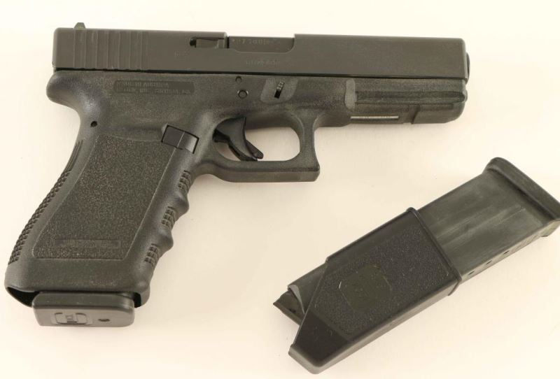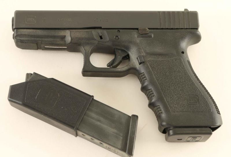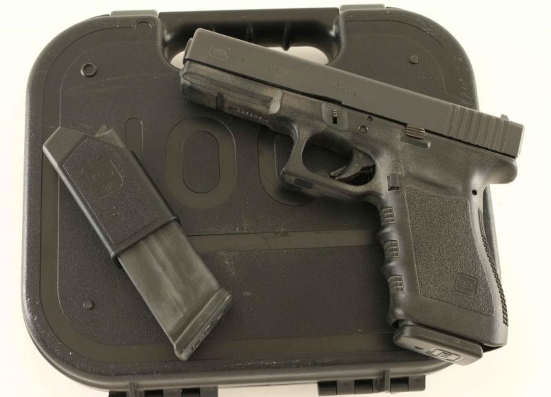Austrian made full size safe-action semi-automatic pistol chambered in .45 Auto. Features a black finished slide, 4.6" barrel, white dot front sight, dovetailed rear sight with white outlined square notch, trigger safety, push button magazine release, factory 10 round magazine, and a durable black polymer frame with integral accessory rail & finger groove grip. Includes a factory hard case with cleaning rod, brass jag, speed loader and spare magazine. The frame exhibits small specs of tan finish within the polymer's texture either from over spay or a previous finish that has been predominantly removed or worn. The slide possesses the same color within the slide serration but otherwise retains approximately 99% of it's black coated finish showing minor edge wear. Action is crisp, bore is excellent and polymer is good. Condition is NRA Very Good+++. ***Modern Firearm***