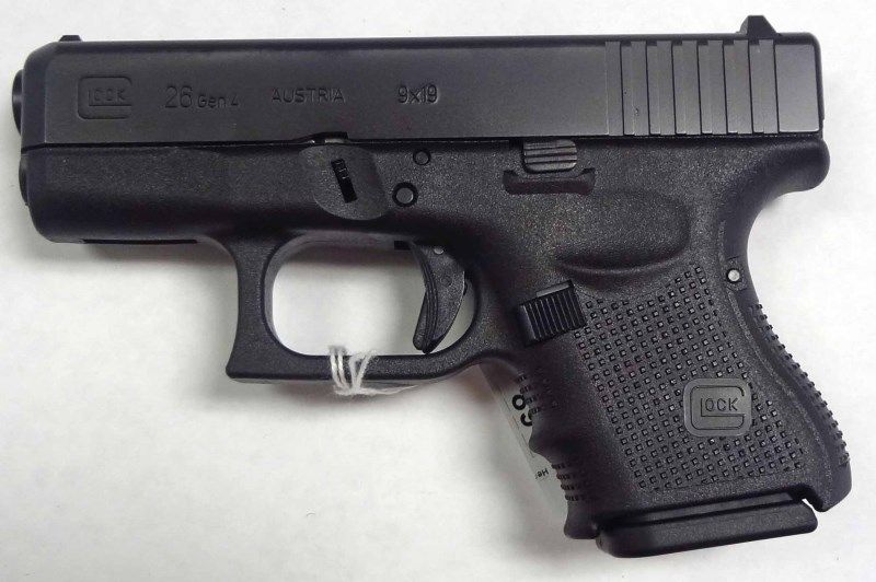 Glock 26 Gen 4. 9mm. new in box. Black Matte finish. Safe action. Capacity: 10+1. 3 magazines. Safety: safe action-3 separate automatic safeties. Fixed sights. Barrel Length: 3.43". Overall length: 6.29". Weight: 19.75oz. Features: magazine loader, cleaning rod and brush, interchangeable backstraps. EST:$625-$675