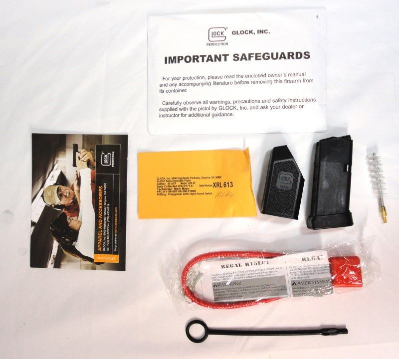 Glock 30SF (Short Frame), semi-automatic pistol. new in box. 45. safe action. tenefier matte finish, 10+1 capacity; fixed sights, features include: magazine loader, cleaning rod and brush, Equip rail. EST:$600-$650
