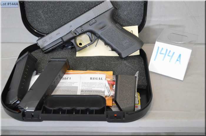 Glock ( Generation 3 ) Model 22C .40 S & W cal 10 shot semi automatic Pistol w/ 114 mm bbl [ appears as new un-fired , blued finish, w/ booklets, cable lock, extra mag, cleaning rod etc ] Ser # AAFK 080 * Restricted Handgun Cert # 17385631