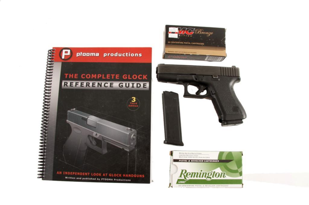 Condition: Excellent wVery nice Austrian double action semi-auto pistol in .40S&W caliber. Matte black finish on Polymer grip frame and steel slide, 4" barrel, drift adjustable three dot sights, good bore and action. Condition: Excellent with little sign of use.Includes 2 magazines, two full boxes of ammo, and a complete guide to Glock pistols.