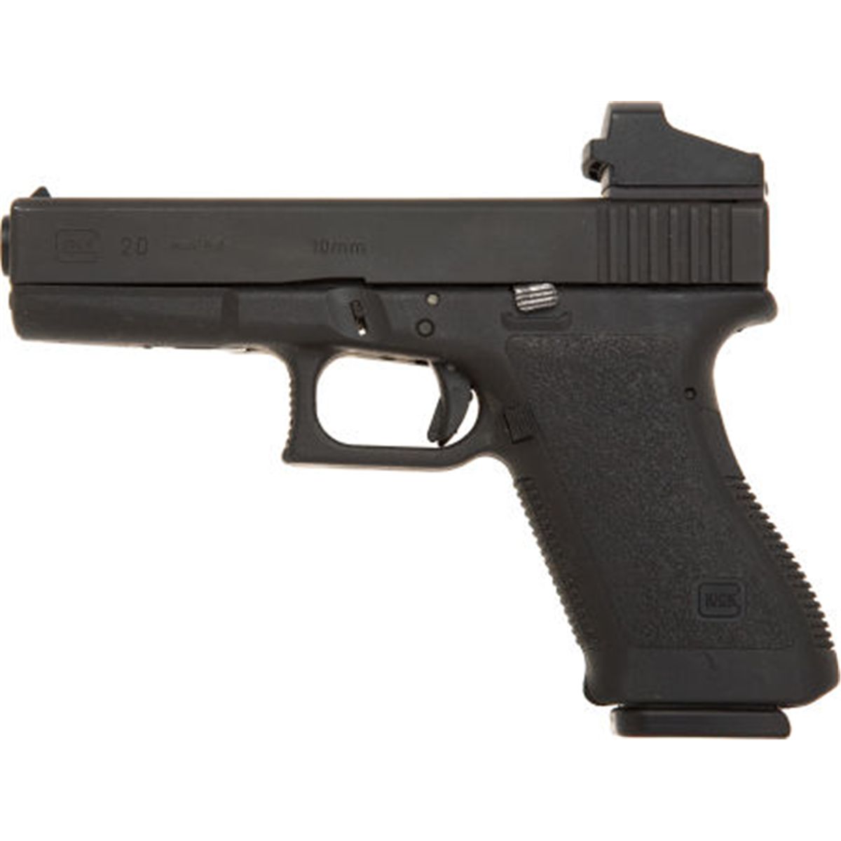 Glock Model 20 Semi-Automatic Pistol. Serial no. UA934US, 10mm, 4 1/2-inch barrel with custom Optima 2000 rear sight. Grey finish. Molded plastic grips. Condition: Fine to excellent with light handling and storage wear.NRA FIREARMS FOR FREEDOM PROGRAM