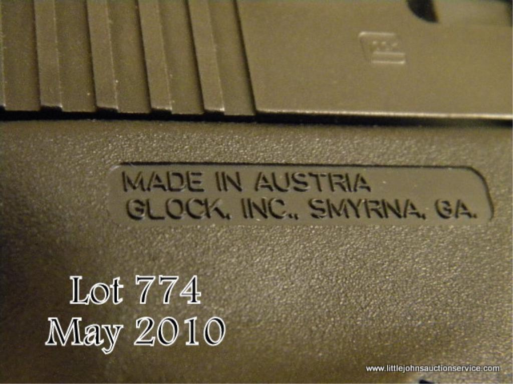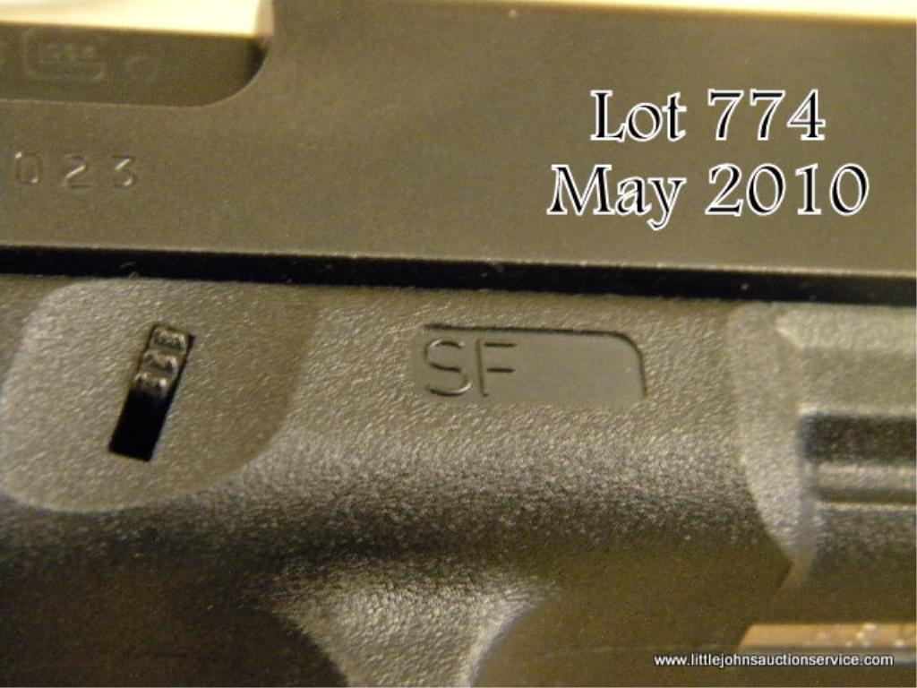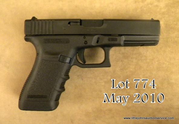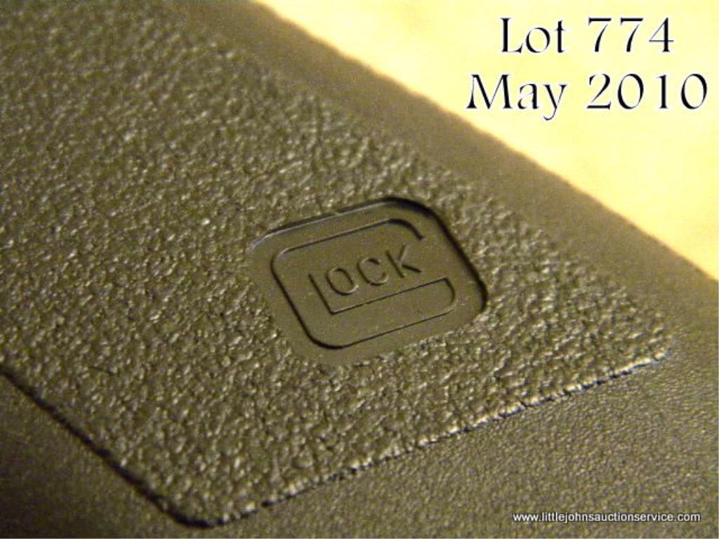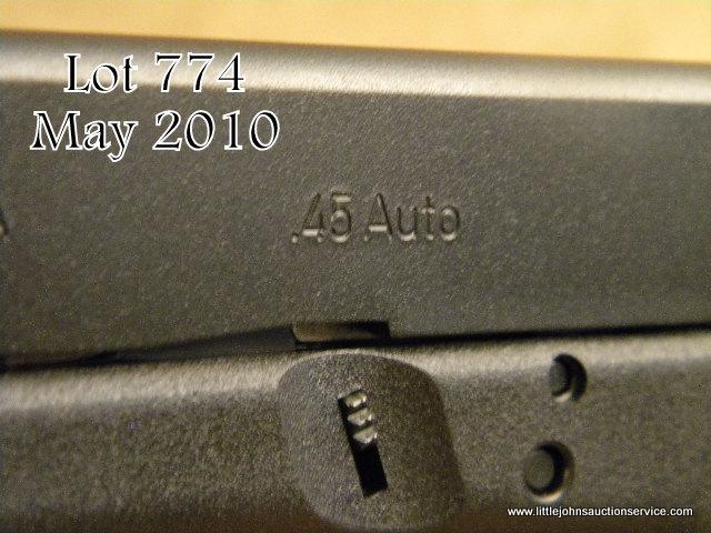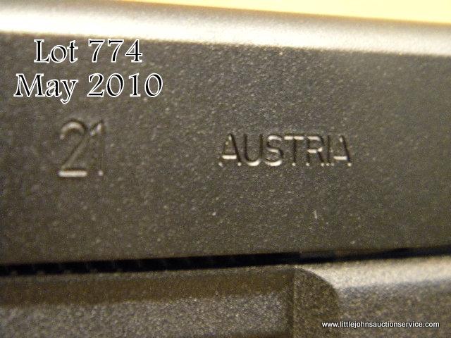 Glock Model 21 semi-auto pistol, .45 cal., 4-1/2” barrel, black finish on slide, composite integral grip and frame, #MRV023 in factory black plastic carry case, extra magazine and gun lock. This gun is in overall like new condition showing littlehandling. A favorite of law enforcement. Est.: $300-$600.