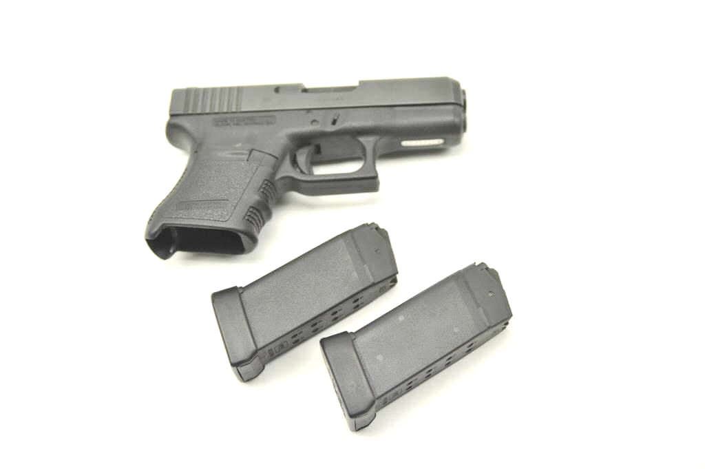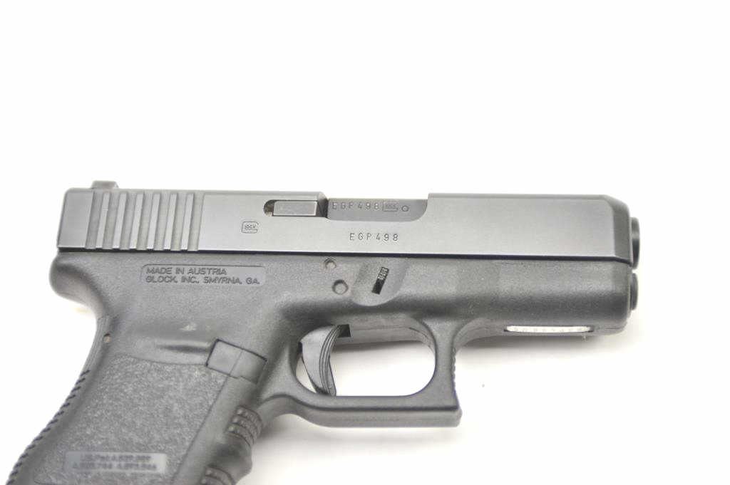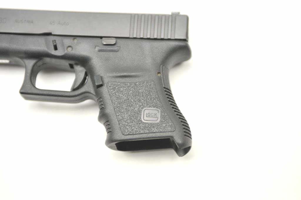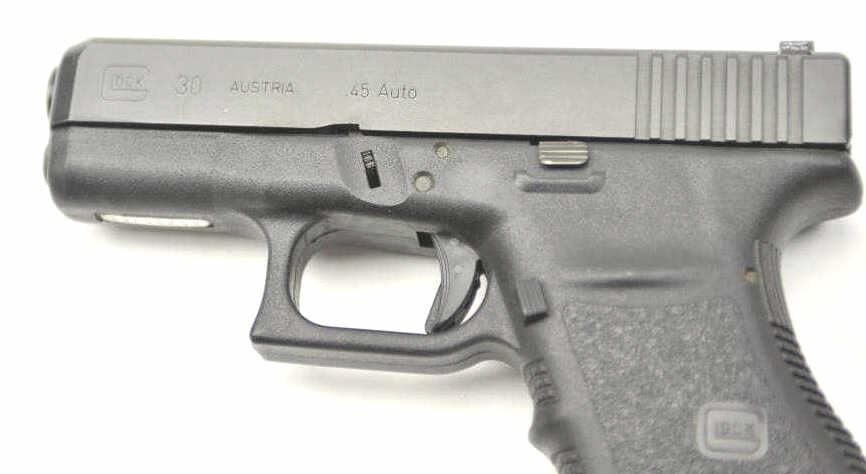 Glock Model 30 compact semi-automatic pistol, .45 ACP caliber, Serial #EGP498US. The pistol is in fine overall condition with night sights added. The pistol retains nearly all of the matte blue finish withlight edge wear from carry and use. The grips are good and the lot includes two correct magazines. The bore is bright, the action crisp and markings are sharp. Est.: $400-$800. (Modern/PPT).