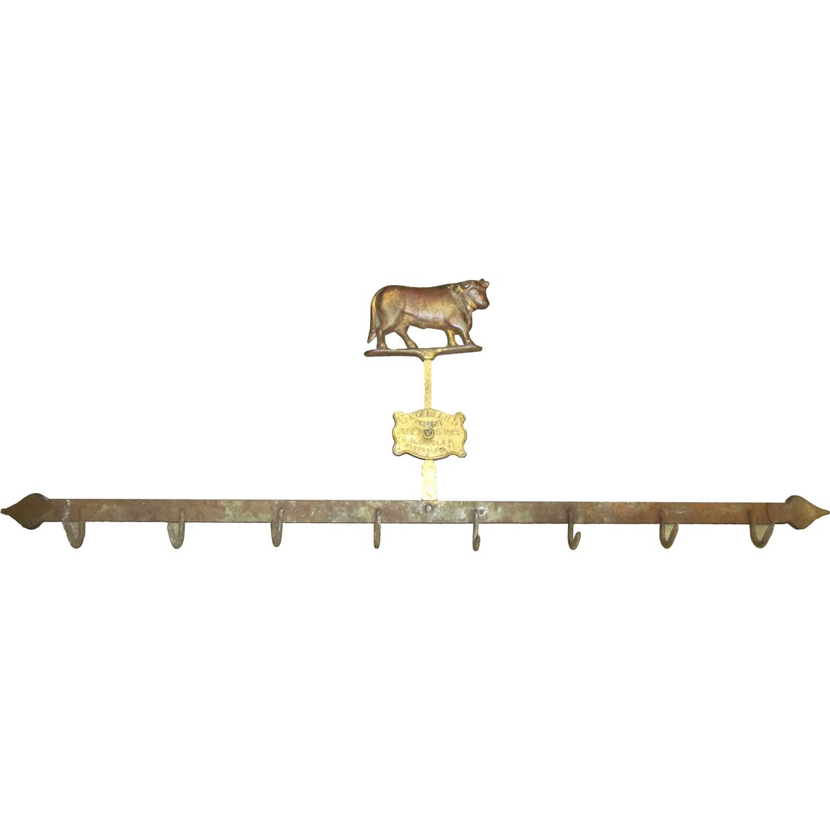 Gloeklers Cast Iron Butchers Meat Hook. Patent 1889 B. Gloekler Pittsburg, PA. Break in bottom of plaque otherwise good original condition. 48 inches long X 16 1/2 inches tall.