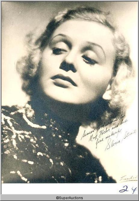 Gloria Stuart from The Max Factor Collection / (1) 3 1/2 x 4 1/2 Autographed Photograph Printed from an Autographed Negative/ "Sincere Good Wishes To Max Factor And His Fine Make-Up, Gloria Stuart" / Photographed is marked as No. 24 in blue ink