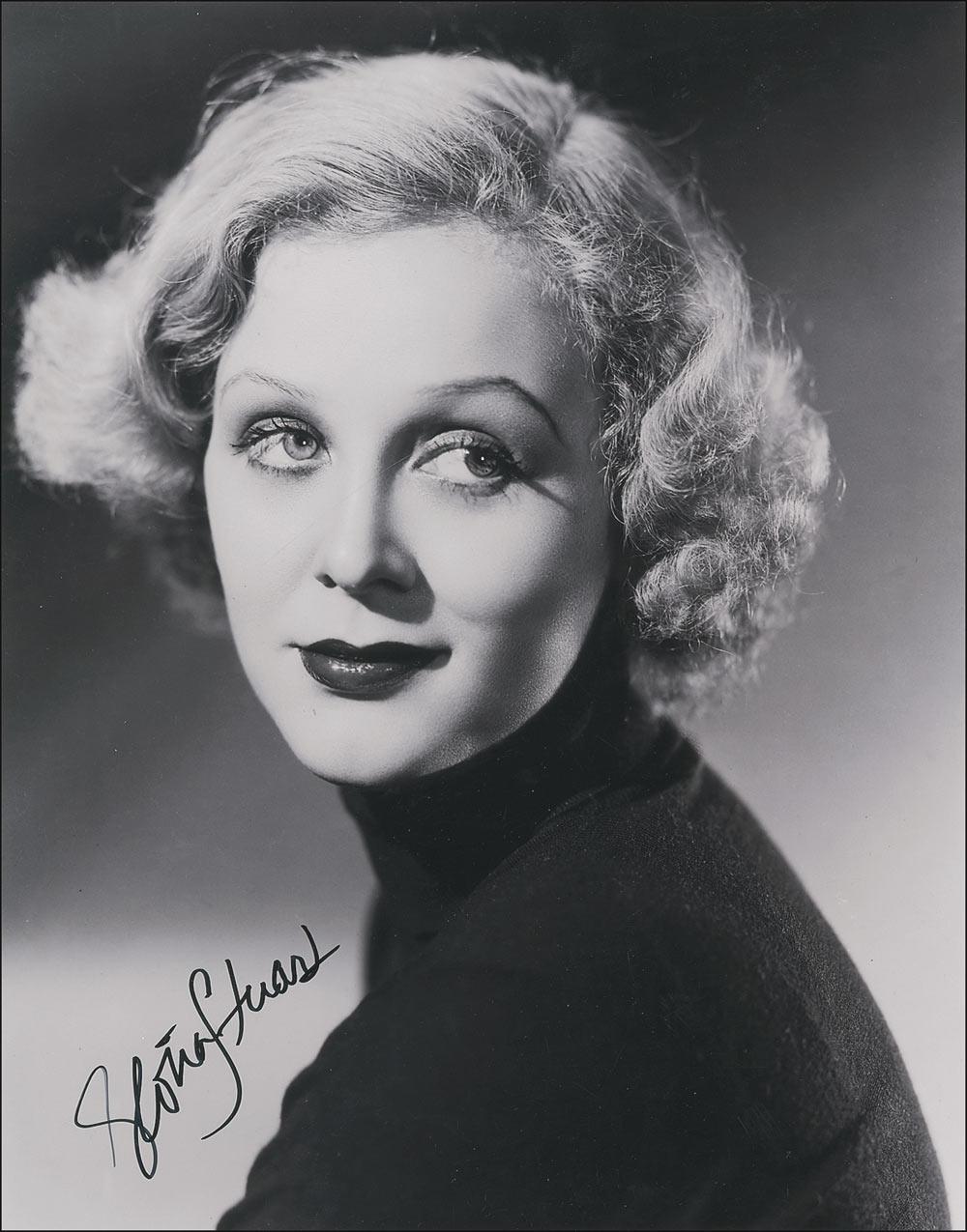 Pretty glossy 11 x 14 photo of Stuart looking over her shoulder, signed in blue felt tip. In very fine condition.