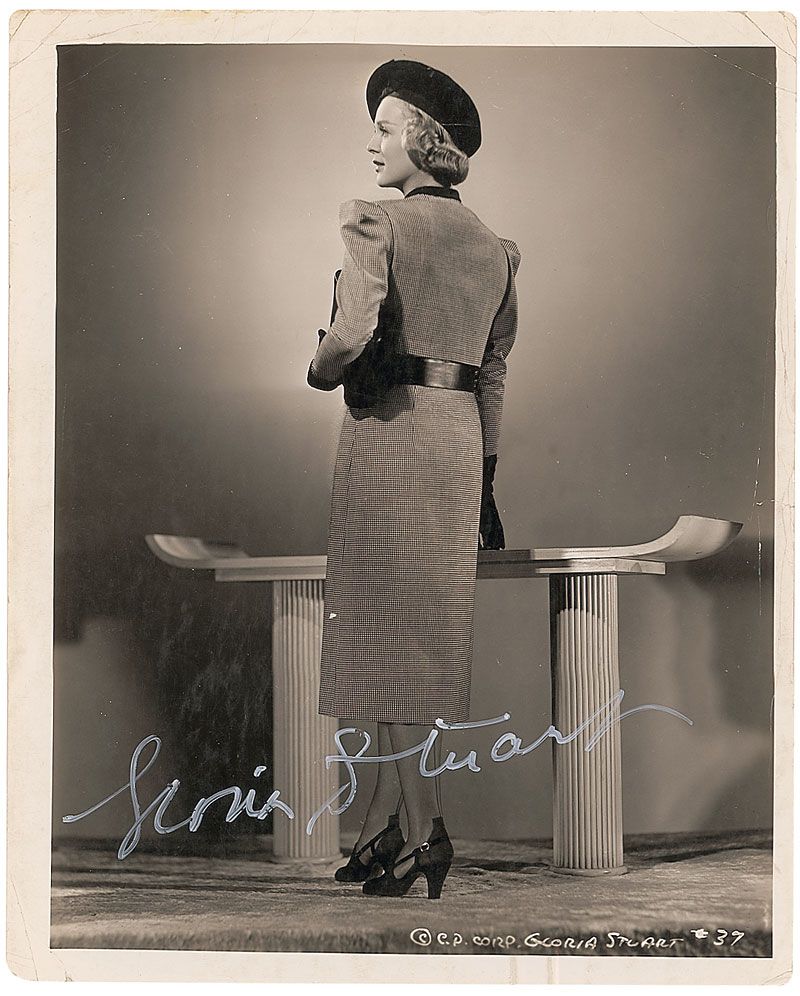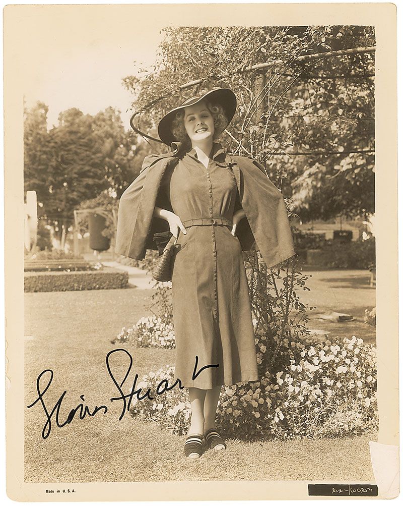 Two glossy 8 x 10 full-length photos of Stuart, each signed in black or white ink. In overall very good to fine condition, with some emulsion loss to the lower right corner of one photo and scattered creases and a small edge tear to the other.