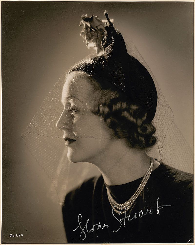Original circa 1930s glossy 10.75 x 13.75 Universal Pictures publicity portrait of Stuart wearing a veil, signed later in white ink. Reverse of photo bears various studio stamps, including that of photographer Ray Jones, and an affixed caption. In fine condition, with unobtrusive creases to corner tips.