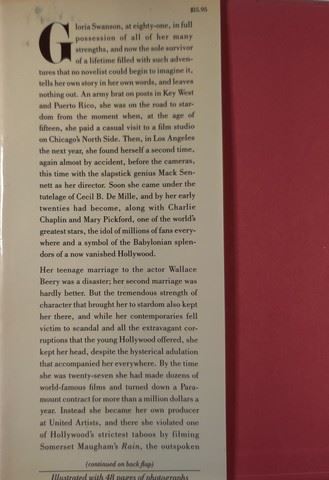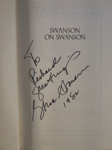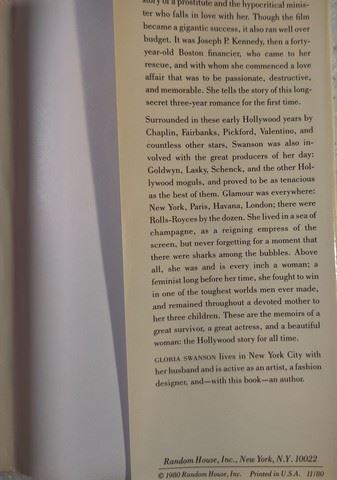 Swanson on Swanson, an Autobiography (Random House, 1980) hard cover book, written and signed by Gloria Swanson. 519 pages.