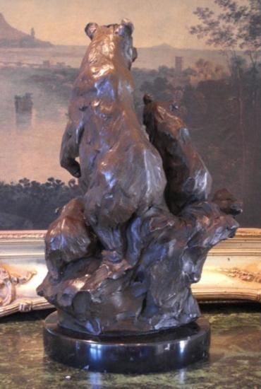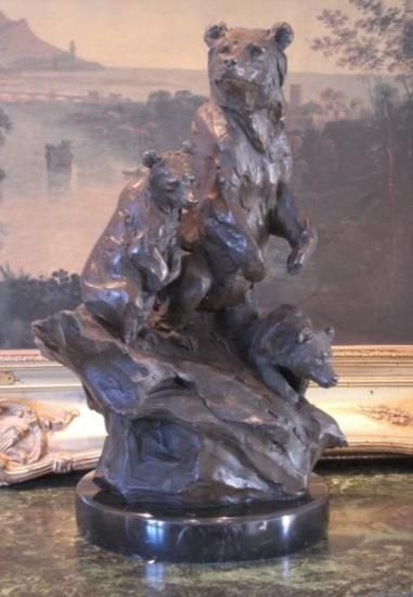 Bear Family Bronze Sculpture, After Barye 17"H x 9"W x 10"D 24 lbs. This bronze sculpture was produced using the "Lost Wax" casting method. The"Lost Wax" Cast method is the most precise metal casting technique in existence, ensuring exquisite detail of the original host model which is usually sculpted in clay or wax. This "Lost Wax" casting method is an extremely labor intensive and expensive process, but the end results produce a Heirloom Quality Masterpiece!Antoine-louis Barye (1796 - 1875) Originally trained as a goldsmith, Antoine-Louis Barye served in Napoleon's army before studying sculpture and painting. He entered the Ecole des Beaux-Arts in 1818 and adapted the romantic-style subject matter of violent and majestic animals. After his crocodile-like sculpture entitled Tiger Devouring a Gavail, won a medal at the Salon of 1831, Barye became a successful and independent sculptor and painter. His animal sculptures competed at the Salon alongside the more traditional and revered human figures. In 1845, Barye began a foundry that produced smaller and more affordable bronze statues. He was appointed the keeper of plaster casts at the Louvre and professor of zoological drawing at the Musee National d'Histoire Naturelle, both in Paris. Elected to the Academie in 1868, Barye inspired a later generation of animal sculptors who called themselves the animaliers.