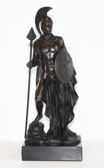 Gladiator Bronze Sculpture, After Rubin, 14"H x 6 "W x 5"D 12 lbs. This bronze sculpture was produced using the "Lost Wax" casting method. The"Lost Wax" Cast method is the most precise metal casting technique in existence, ensuring exquisite detail of the original host model which is usually sculpted in clay or wax. This "Lost Wax" casting method is an extremely labor intensive and expensive process, but the end results produce a Heirloom Quality Masterpiece!