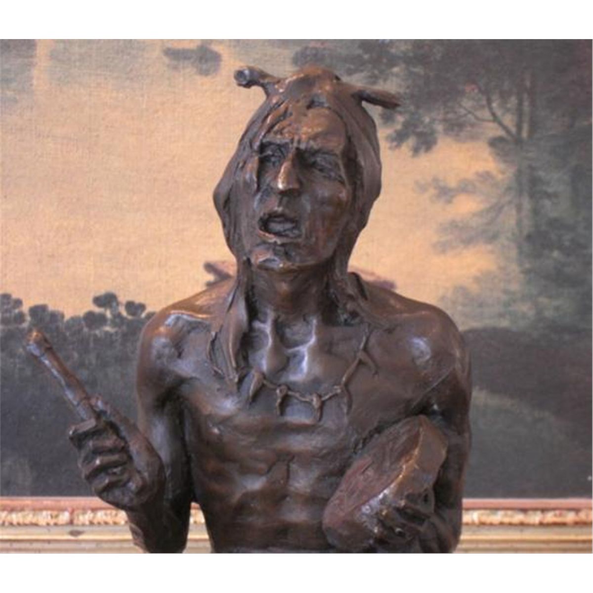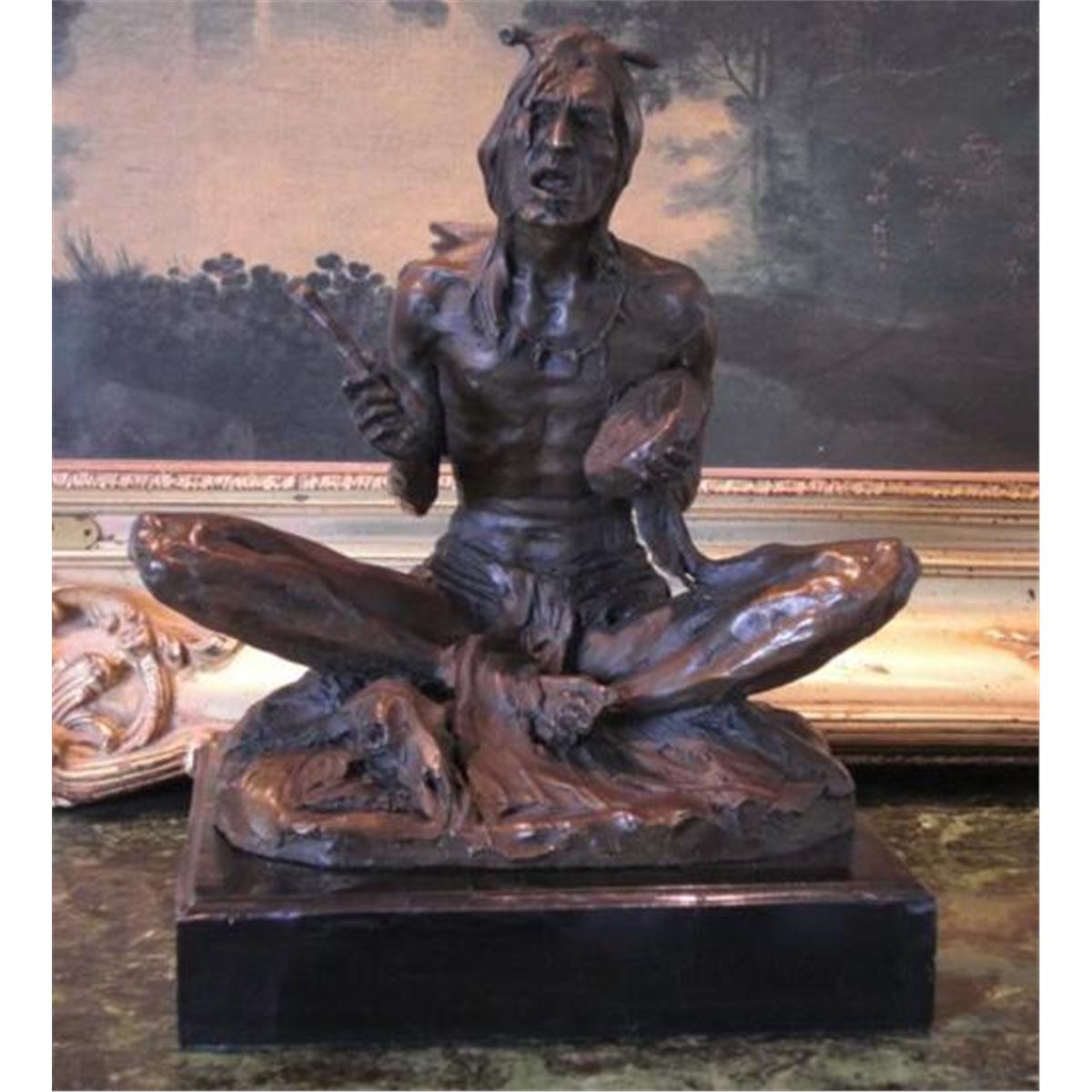 Seated Native American Indian Bronze Sculpture, 11"W x 8"H x 9"D 24 lbs. This bronze sculpture was produced using the "Lost Wax" casting method. The"Lost Wax" Cast method is the most precise metal casting technique in existence, ensuring exquisite detail of the original host model which is usually sculpted in clay or wax. This "Lost Wax" casting method is an extremely labor intensive and expensive process, but the end results produce a Heirloom Quality Masterpiece!