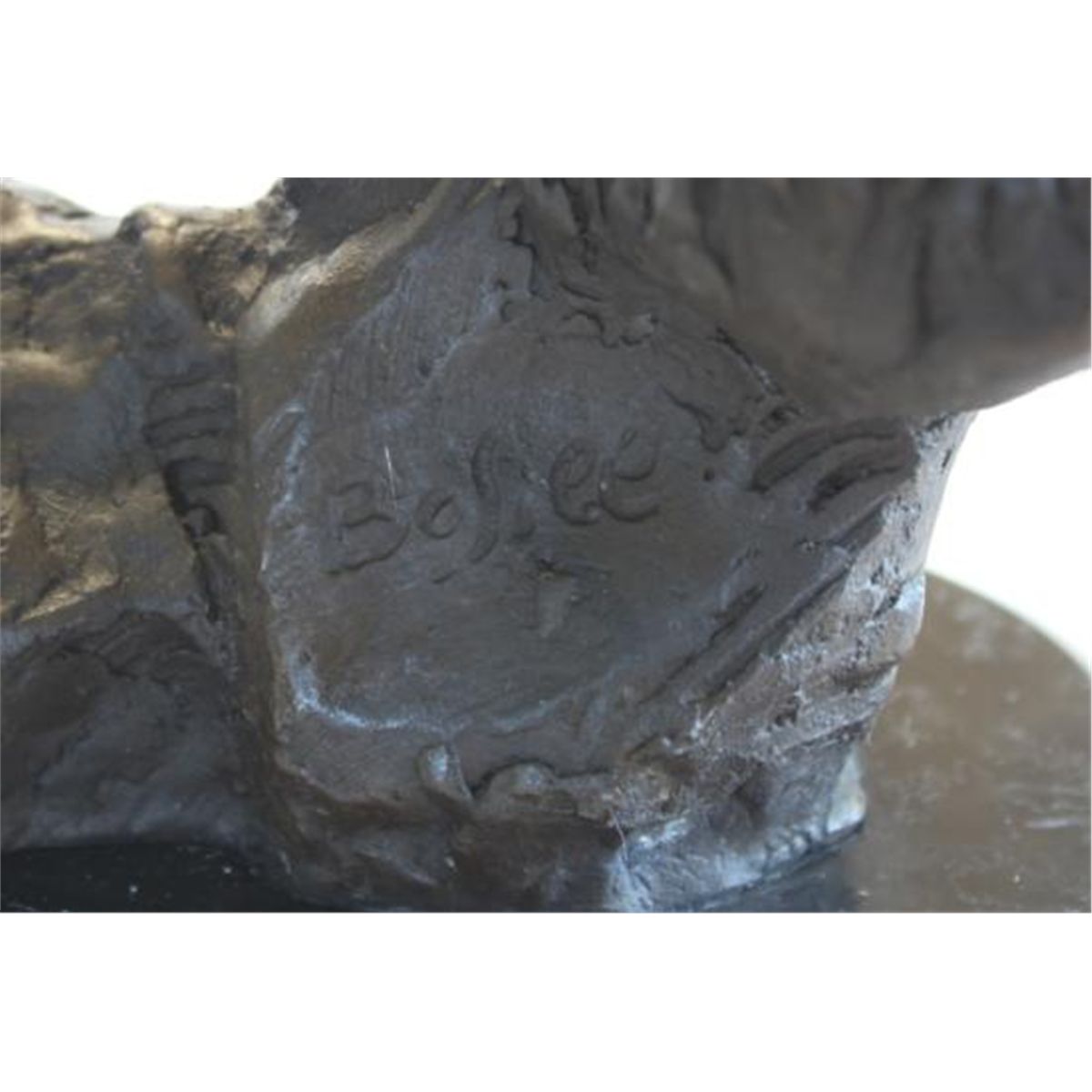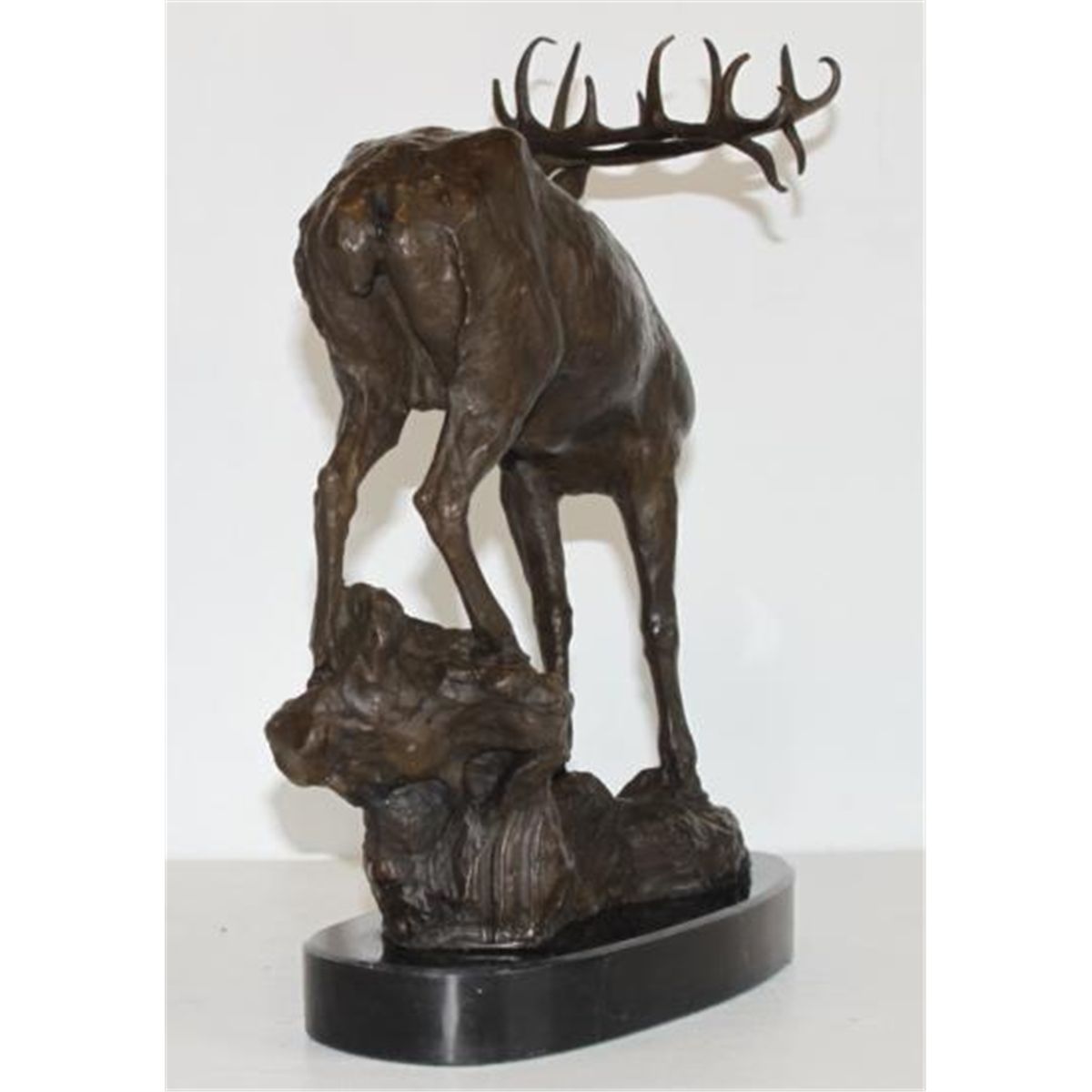 Single Standing Elk Bronze Sculpture, After Boilee 14" H x 12"L x 5"D 17 lbs. This bronze sculpture was produced using the "Lost Wax" casting method. The"Lost Wax" Cast method is the most precise metal casting technique in existence, ensuring exquisite detail of the original host model which is usually sculpted in clay or wax. This "Lost Wax" casting method is an extremely labor intensive and expensive process, but the end results produce a Heirloom Quality Masterpiece!