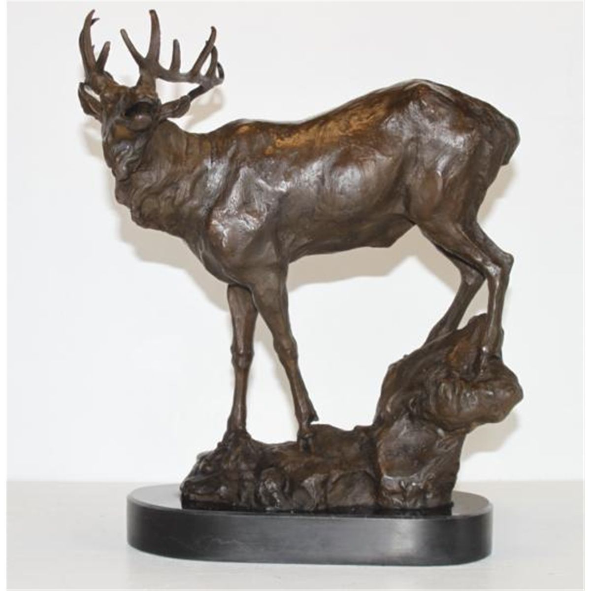 Single Standing Elk Bronze Sculpture, After Boilee 14" H x 12"L x 5"D 17 lbs. This bronze sculpture was produced using the "Lost Wax" casting method. The"Lost Wax" Cast method is the most precise metal casting technique in existence, ensuring exquisite detail of the original host model which is usually sculpted in clay or wax. This "Lost Wax" casting method is an extremely labor intensive and expensive process, but the end results produce a Heirloom Quality Masterpiece!