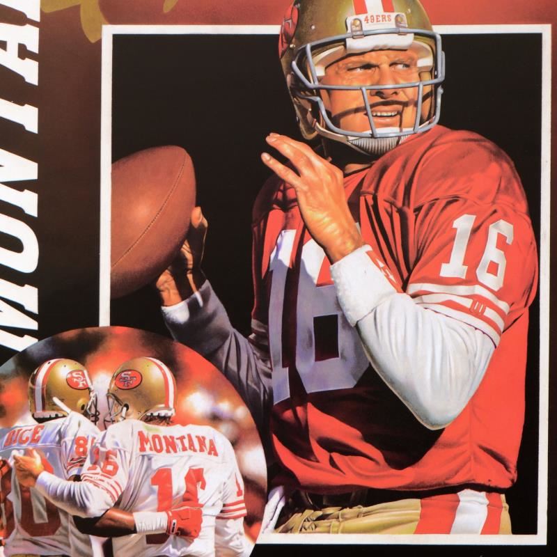 "Glory Days" is a collectible poster featuring Hall of Fame quarterback Joe Montana of the San Francisco 49'ers. Measures approx. 18" x 24" (with border), 17" x 21" (image).