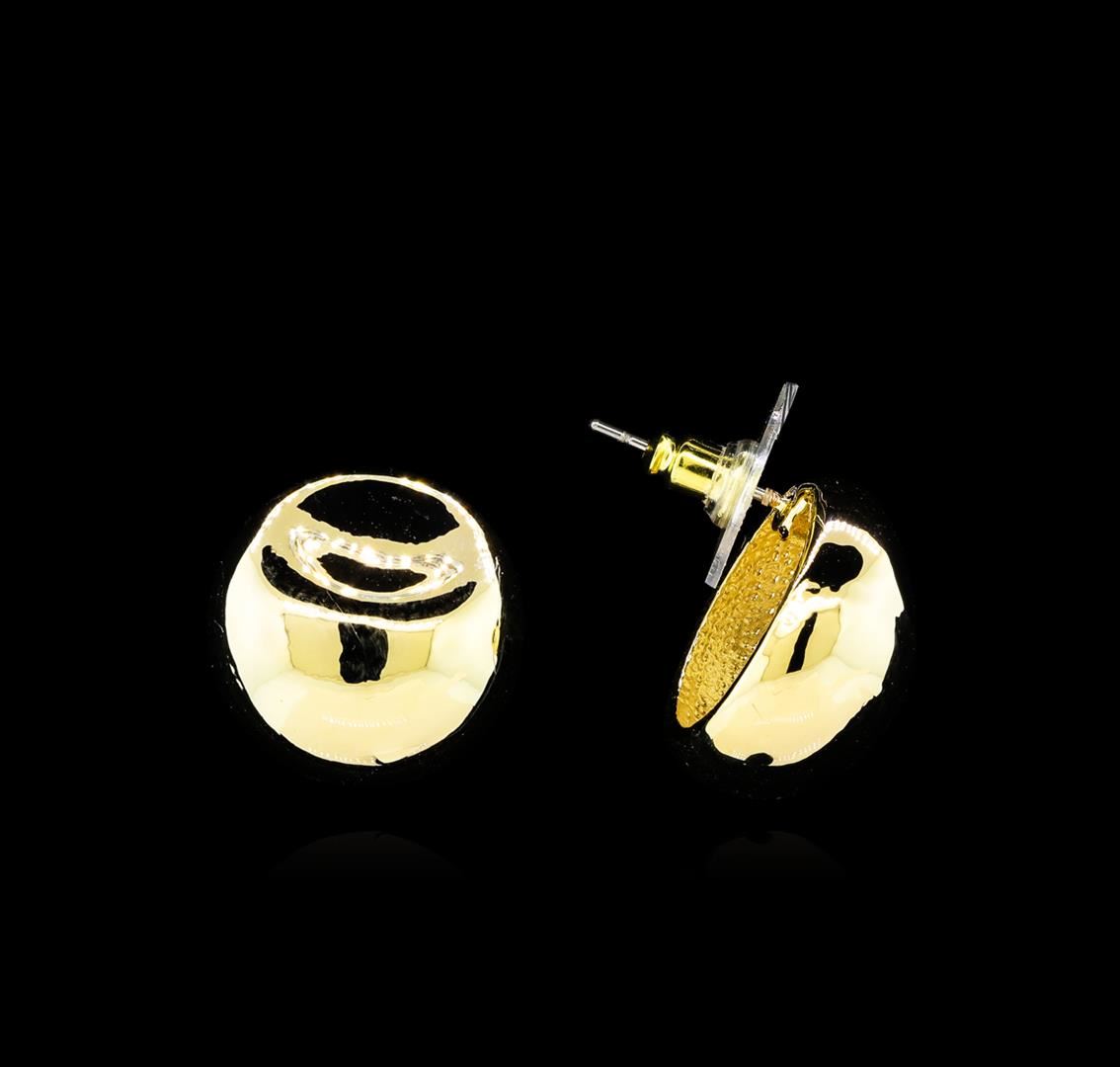 High end designer jewelry. Glossy and Satin Round Post Earrings - Gold Plated. Gold Plated Stud Set. Gold. 1inch.