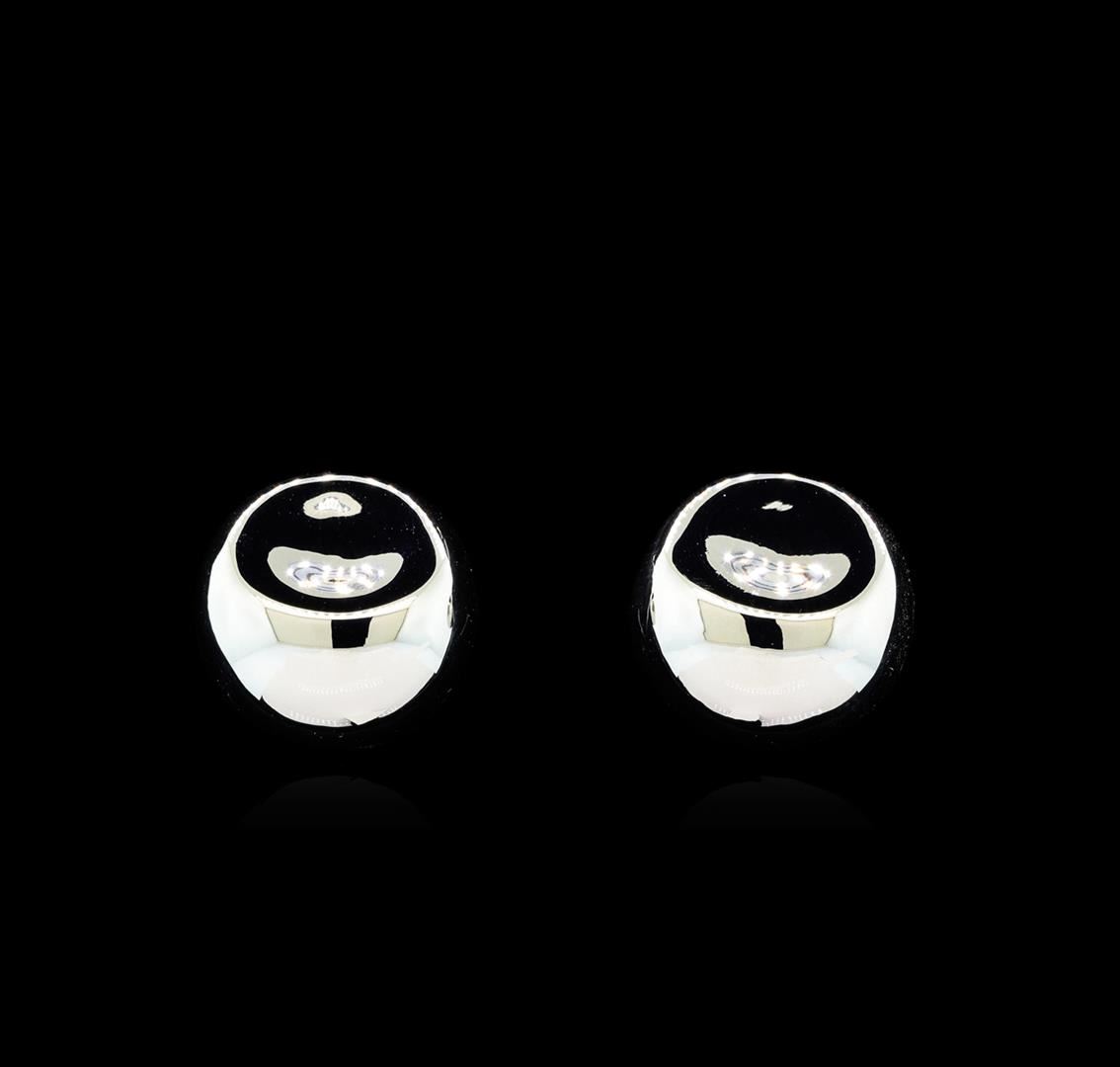 High end designer jewelry. Glossy and Satin Round Post Earrings - Rhodium Plated. Rhodium Plated Stud Set. Silver. 1inch.