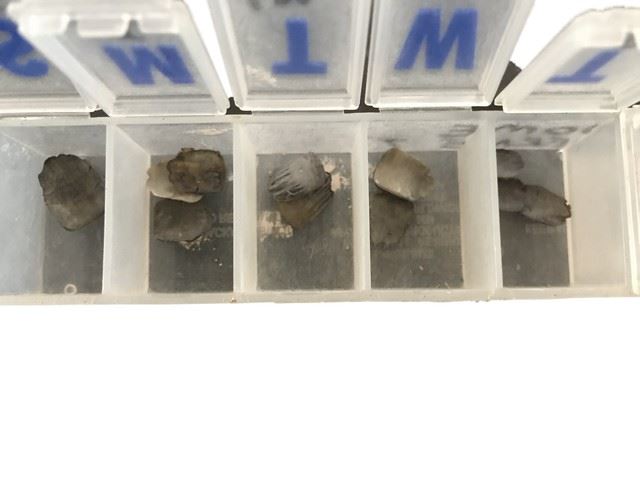 Gnome Alone (2015) - The Gnome (Verne Troyer) prosthetic fingernails sorted in production adapted pill container.