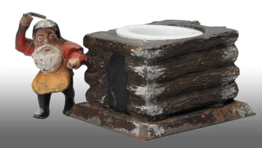 Description Lead metal. Insert present. Missing hinged top to inkwell. Condition (Very Good). Size 1 - 1/2" T.