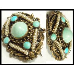 Edwardian persian Turquoise pearl OLD brooch #2182748