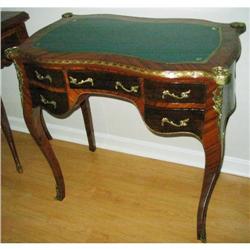 Writing Desk, French Inlay and Brass, Leather #1379612