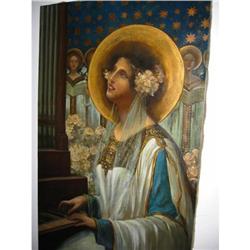 Antique religious woman playing piano signed! #2393015
