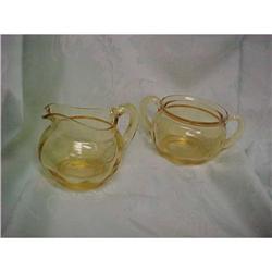 Green Depression Glass Avocado Creamer & Sugar #2020656