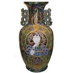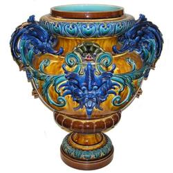 Antique Sarrreguemines Majolica Floor Vase #2382199