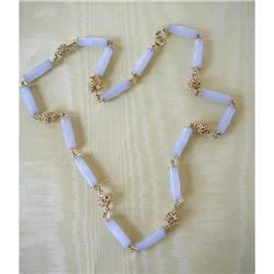 29"~WHITE JADE & 14K Y GOLD LONG CHAIN #945001