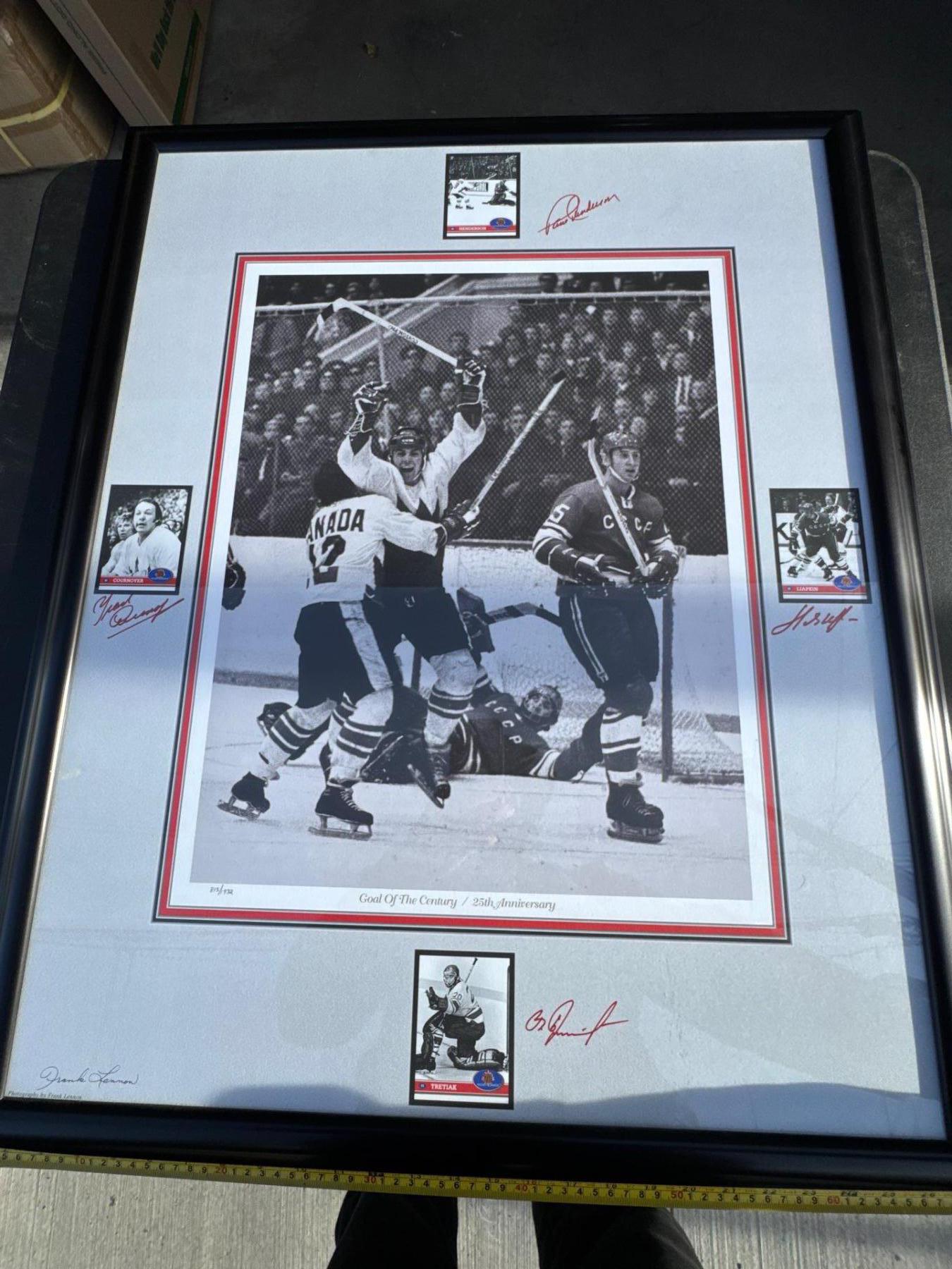 Goal of the century framed painting It's 28 and a half wide by 35 and a quarter long FRAMED PHOTO WITH SIGNED HOCKEY CARDS