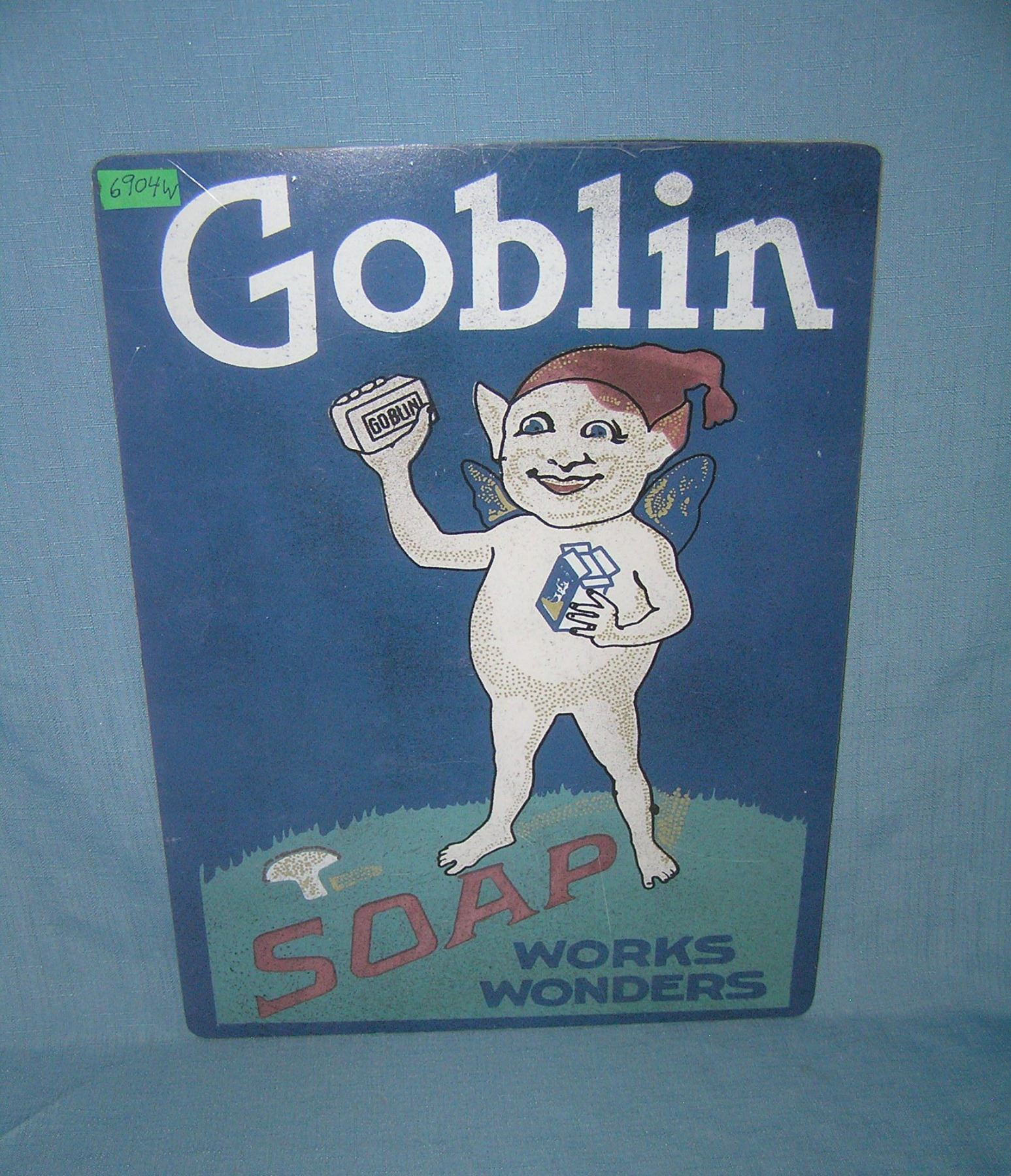 Goblin Soap  retro style advertising sign printed on PVC hardboard these signs are auctioned for their decorative and display purposes 12 inches by 16 inches est. value $50.00-$60.00