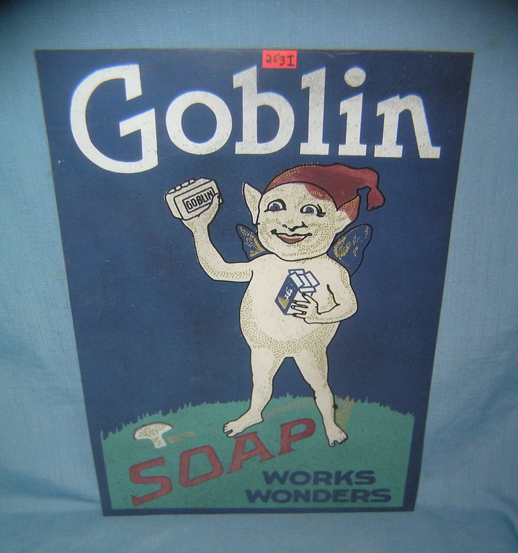 Goblin soap retro style advertising sign 12 inches by 16 inches these signs are printed on PVC hardboard and are auctioned for there decorative and display purposes est. value $40.00-$50.00