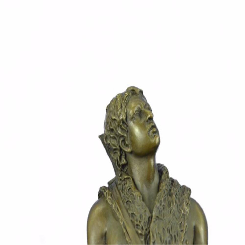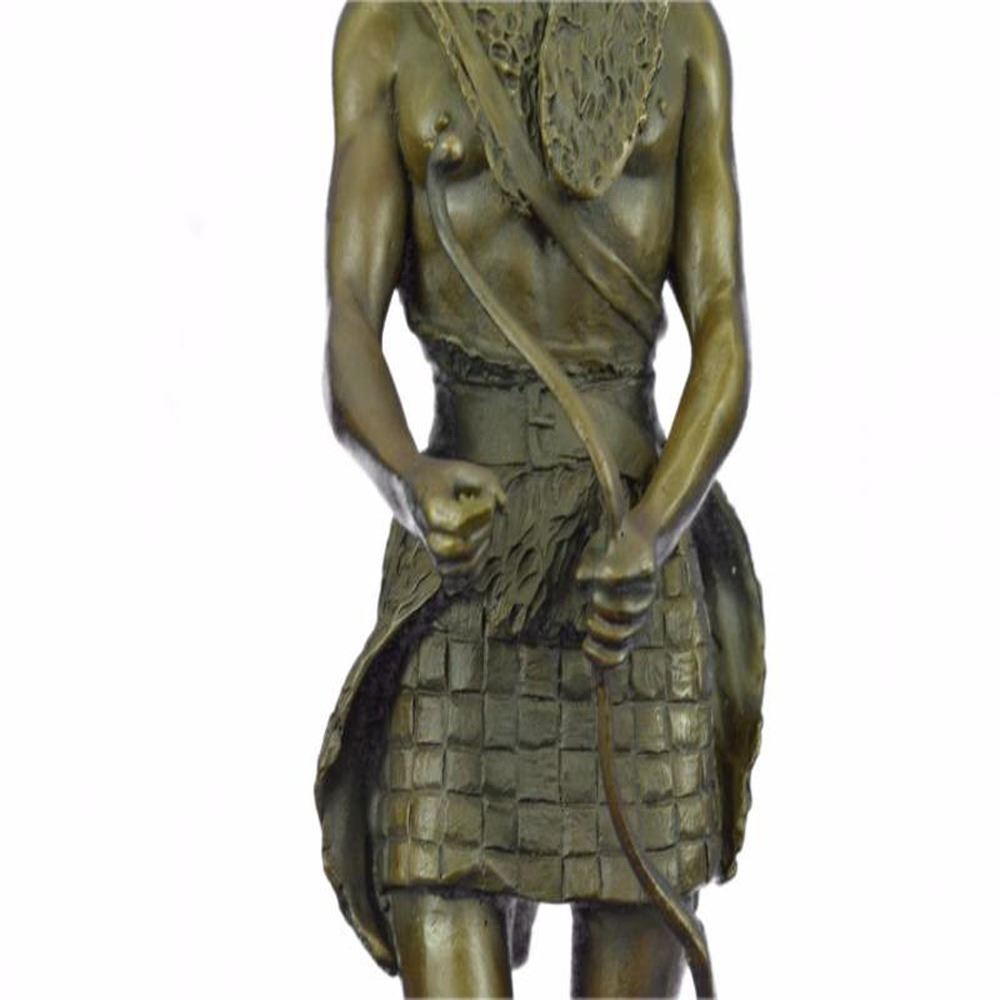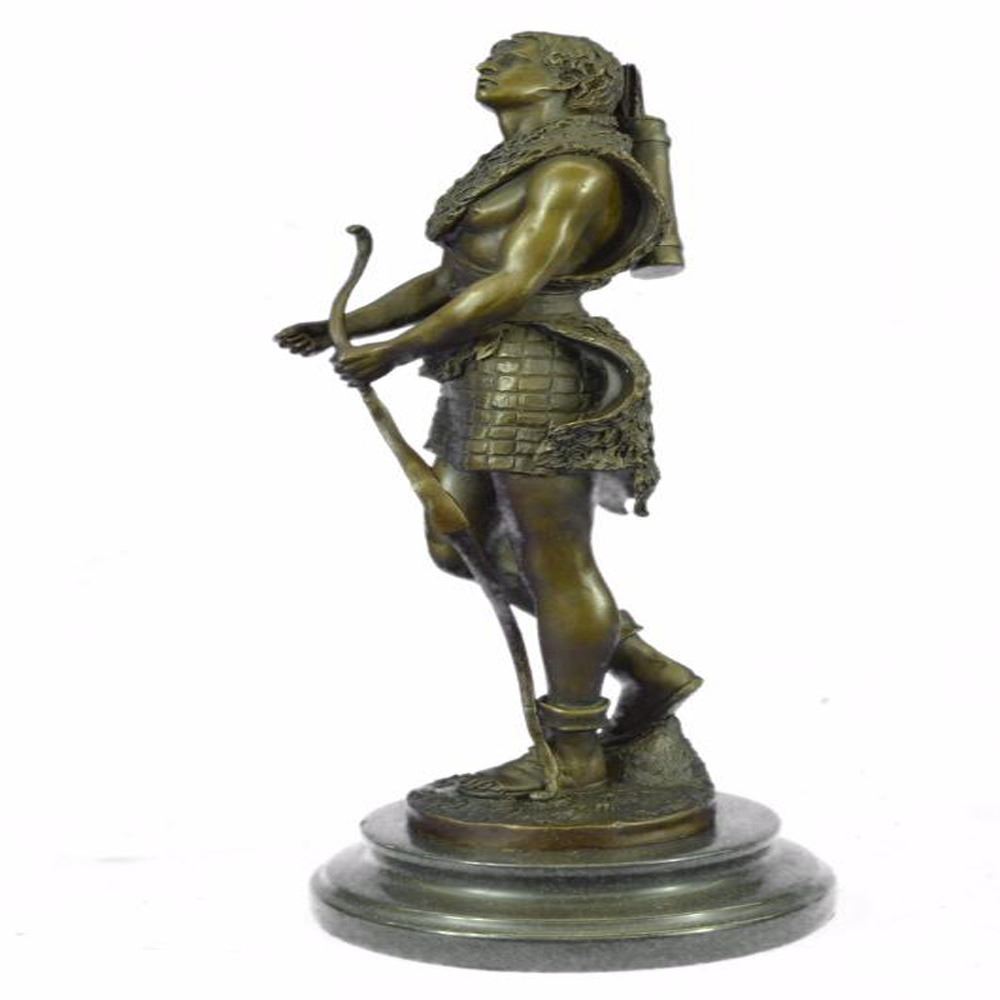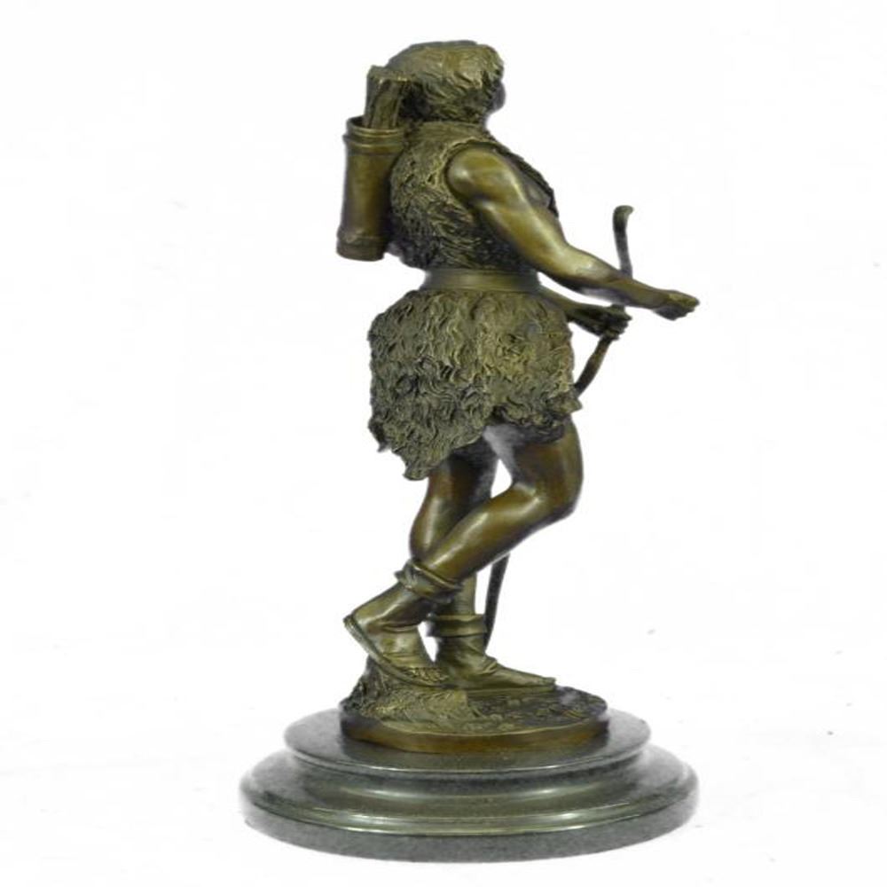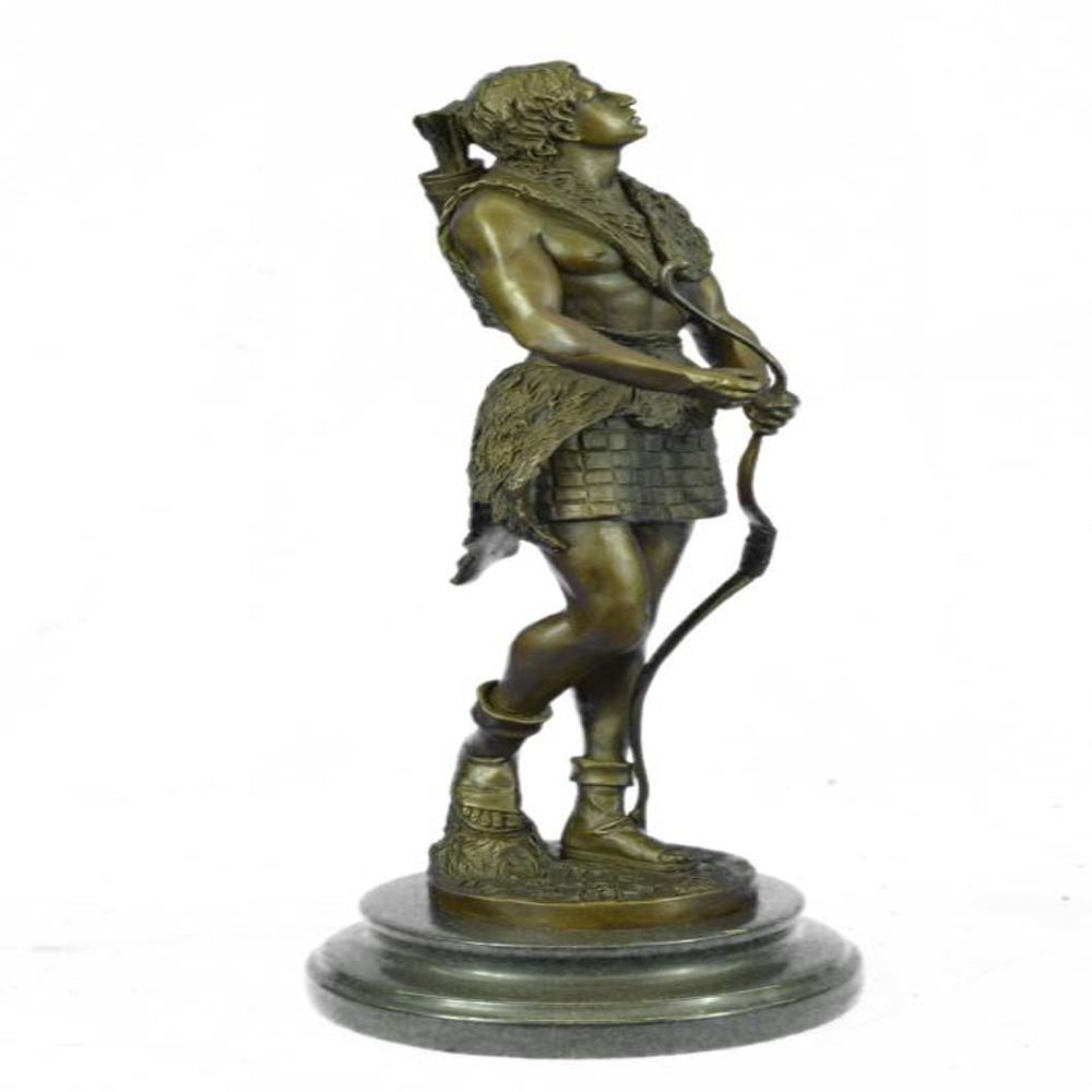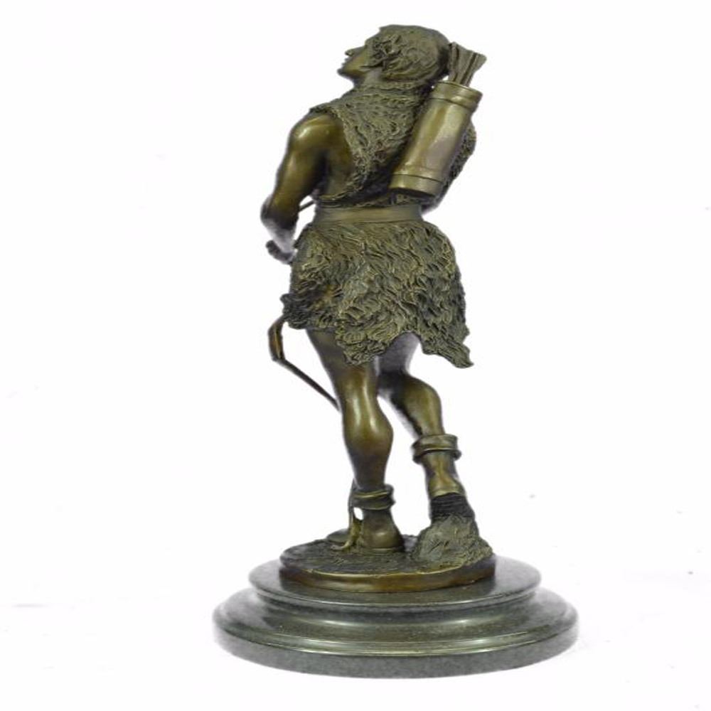 This appealing Statue features a nude male holding a bow and arrow. To be granted the task of protecting his village, he is clearly a powerful authority but also has a gentle and loving nature. An exquisite work of art with great attention to detail. This Sculpture is made of quality hot cast Bronze Sculpture. Bronze Dimensions with Marble Base: Height 15 X Width 6 inches. Weight: 9 LBS.