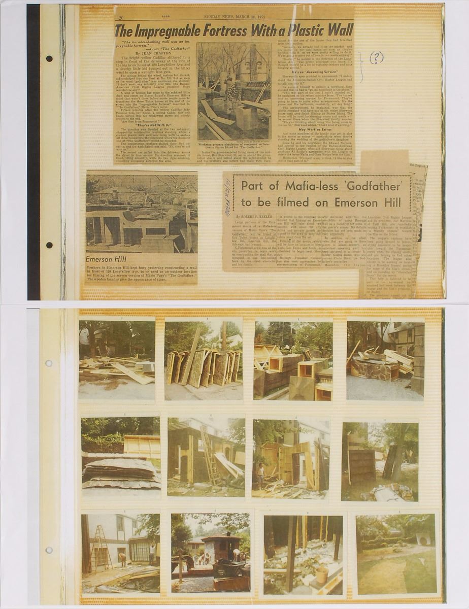 Large portion of faux wall structure from the classic 1972 film The Godfather. Constructed of plywood, foam insulation, and layered with Muralo paint to portray stone texture, this gate section approximately measures 35 x 36.5 x 14.5, and served as an outside corner segment, one of many faux wall pieces designed to enlarge the property grounds of the sprawling Corleone mall. The extensive fabricated faux wall built to surround the Corleone compound can be viewed in three significant scenes: the opening wedding celebration, the transition of power between Michael and Vito, and the Don’s death in the garden. In very good to fine condition. Oversized. Originates from the estate of the Norton family, whose Staten Island mansion, over the course of a year, was famously used by Francis Ford Coppola and crew to film The Godfather. Augmented by its strong provenance, this is a wonderfully detailed and historic piece of craftsmanship designed specifically for the landmark film.
