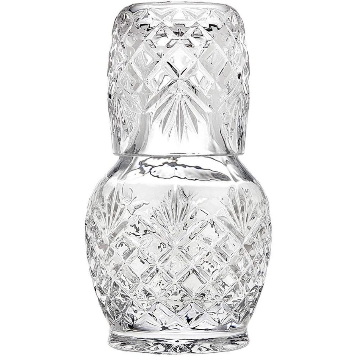Godinger Shannon glass bedside carafe with tumbler set. The carafe holds 16 oz, the cup 8 oz. Come with a gift box.