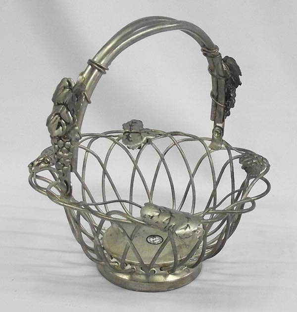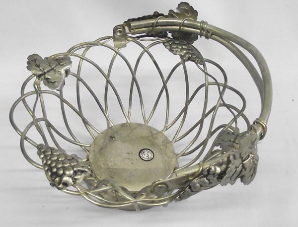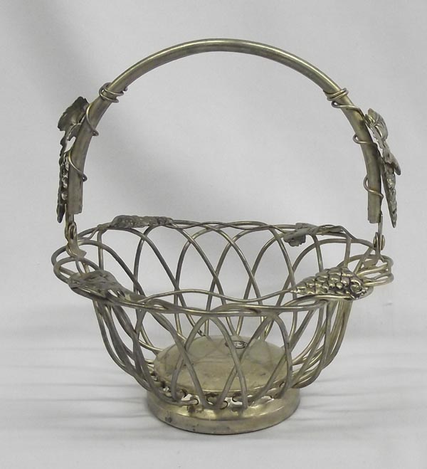 Godinger Silverplate Handled Basket. Grapevine motif, measures approx. 8''H with handle x 8'' across. Buyers Pay Actual Shipping and Handling Charges(see terms and conditions for more information).
