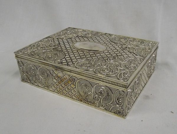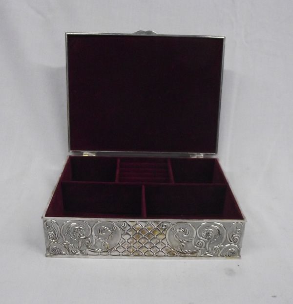 From the Proctor Estate, Godinger Silverplate Jewelry Box, measures 9.5'' x 7'' x 2.5'', velvet lines interior