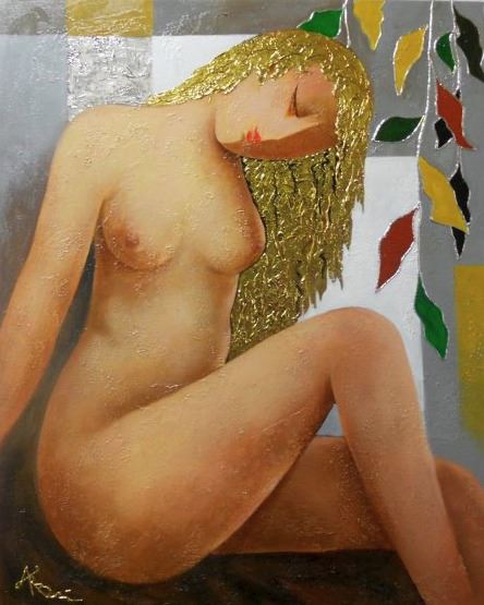 Original acrylic with gold foil and gold leaf on canvas. 30x24"