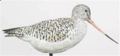Godwit carving by a talented unknown maker. In XOC with carved tail and wing outlines and glass eyes. (decoy)