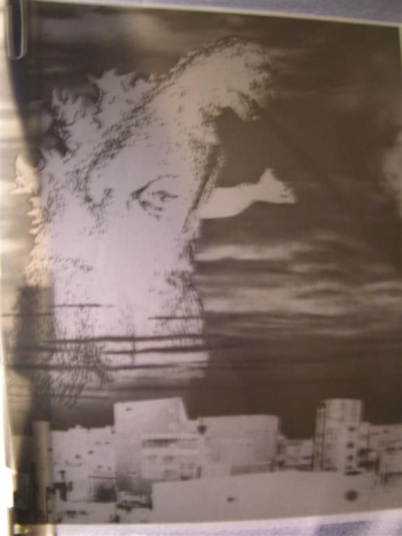 Studio made photo negative for Godzilla, depicting the titular monster ravaging a city. (8x10)