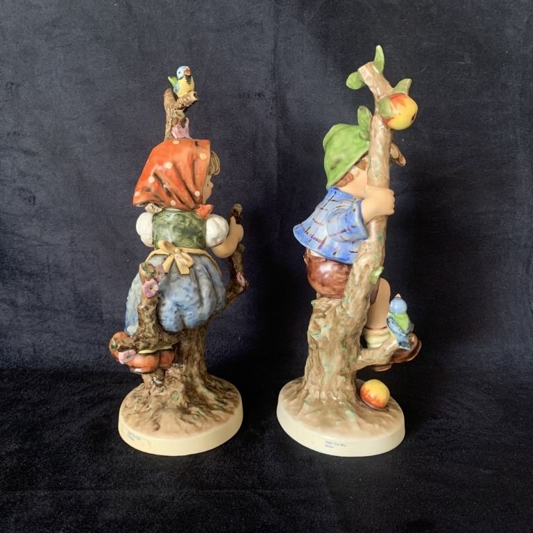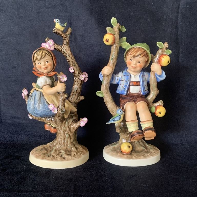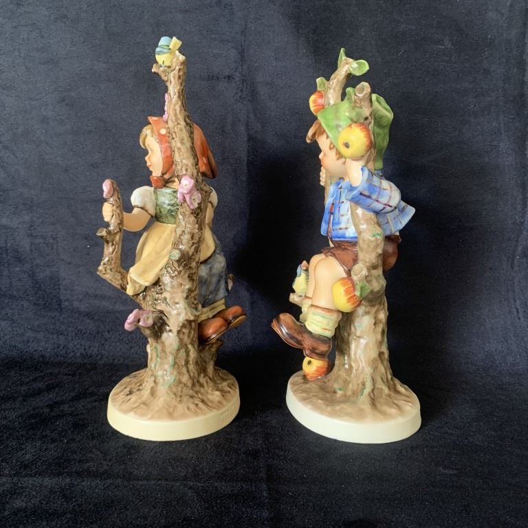 Goebel "Apple Tree Boy" 142/V and "Apple Tree Girl" 141/V, both TMK-6 (1979-1991) porcelain figurines. A lovely pair that is always highly desirbale by Goebel collectors, both in pristine condition.