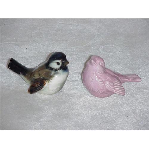 Two porcelain birds, sparrows? I guess, 2 3/4" tall, 4" long. One is realistically painted and the other is a solid color. There is crazing but no chips or cracks. Marked as shown.