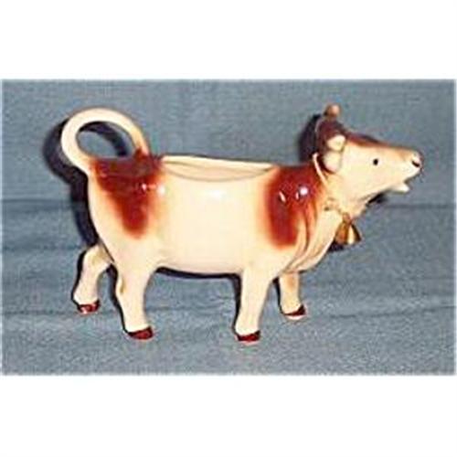 This vintage all original Goebel Cow Creamer is marked with the Full Bee In the V, Germany. From the mid 40's early 50's this is the only one I have found with the original bell! It is in very good + condition with no chips or cracks and measures 6 3/4 inches long and 4 inches tall at horns. A great addition to any Cow or Goebel Collection.<BR>SH & Ins. will be quoted after orders placed. If you have questions feel free to contact me and thank you for looking.