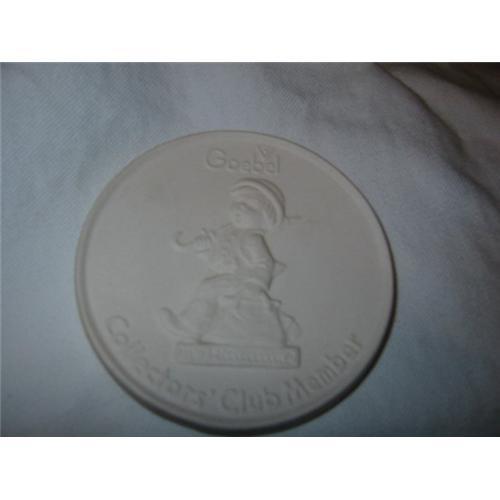 This plaque is of bisque by Goebel and Hummel. It is majolica style with 4 inch in diameter and color of white/Bisque. Features a little boy holding an umbrella with a doctor's bag M.O Hummel. This collector's icon is in excellent condition. It has multiple marks of Collector's Club Member, indicates, Goebel W. Germany. It is wonderful.