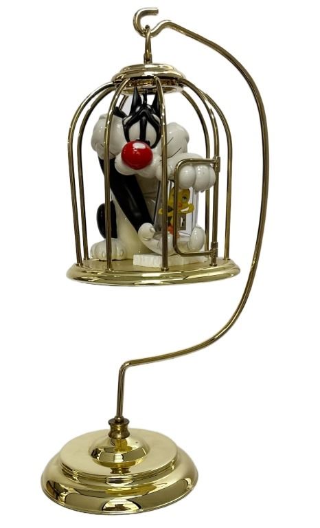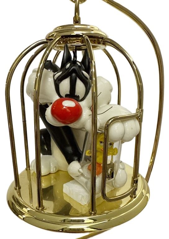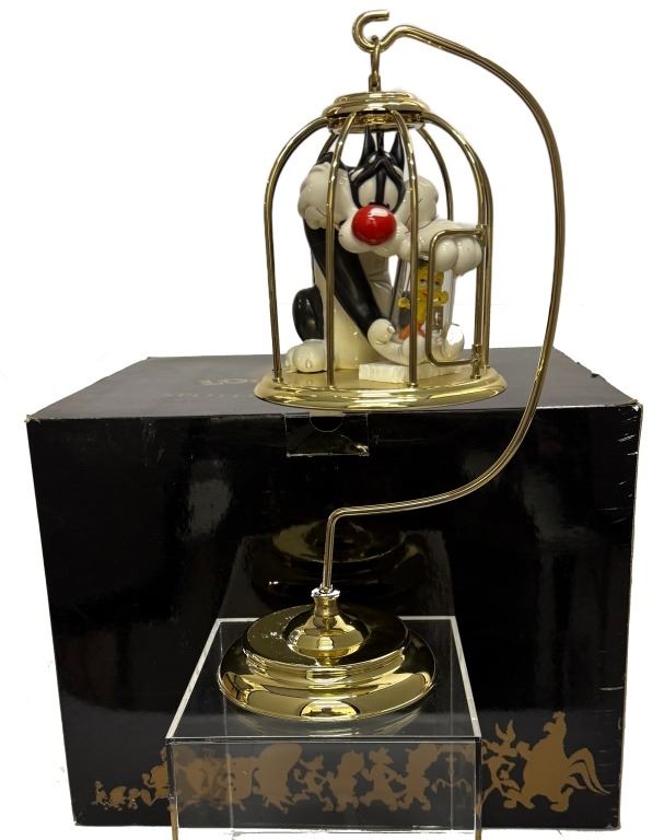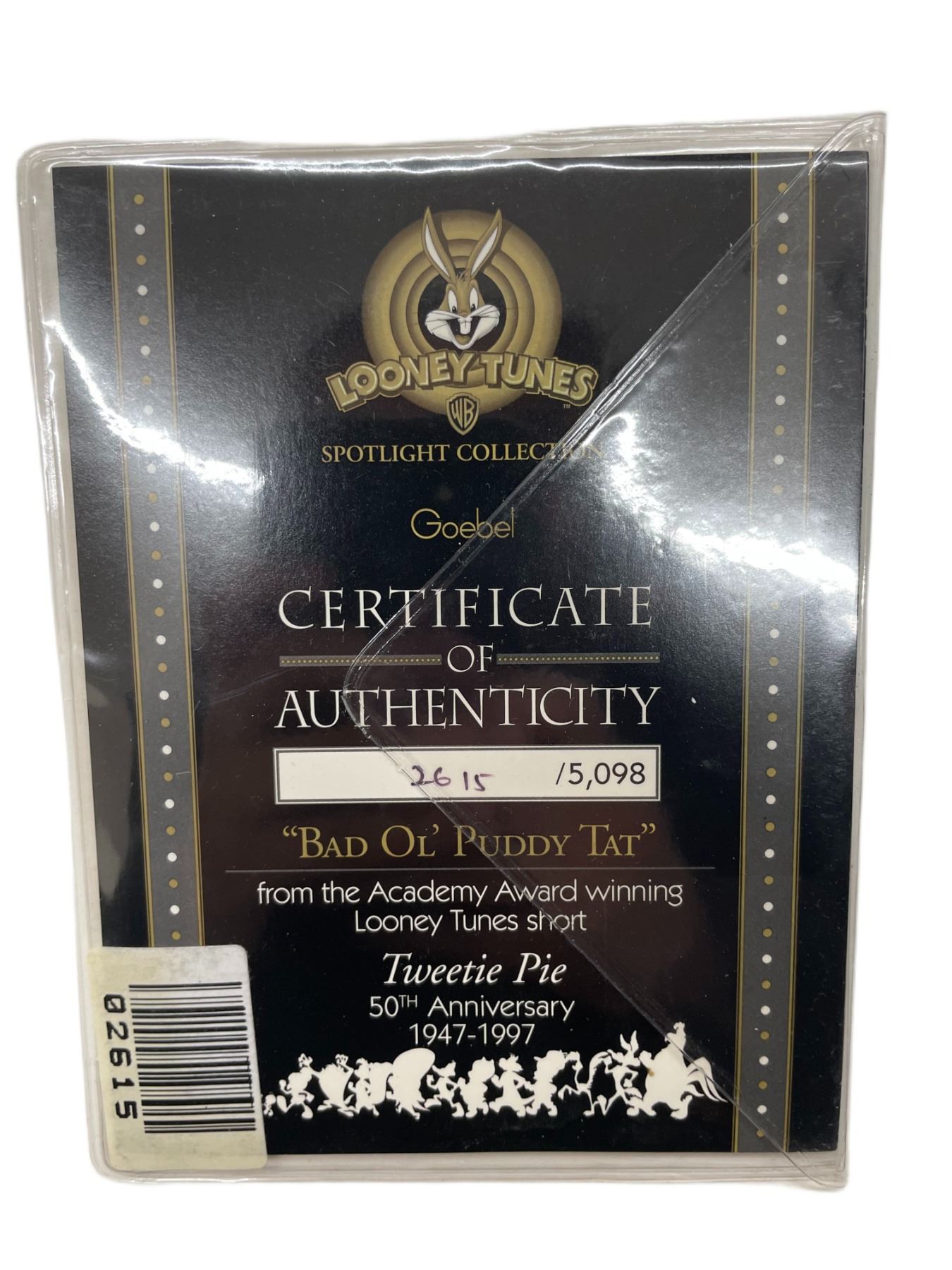 Item/Description: Goebel Looney Tunes Spotlight Collection "Bad Ol' Puddy Tat" figurine depicting Sylvester the Cat with Tweety Bird trapped inside a birdcage. Released in 1997. Includes original box and Certificate of Authenticity.